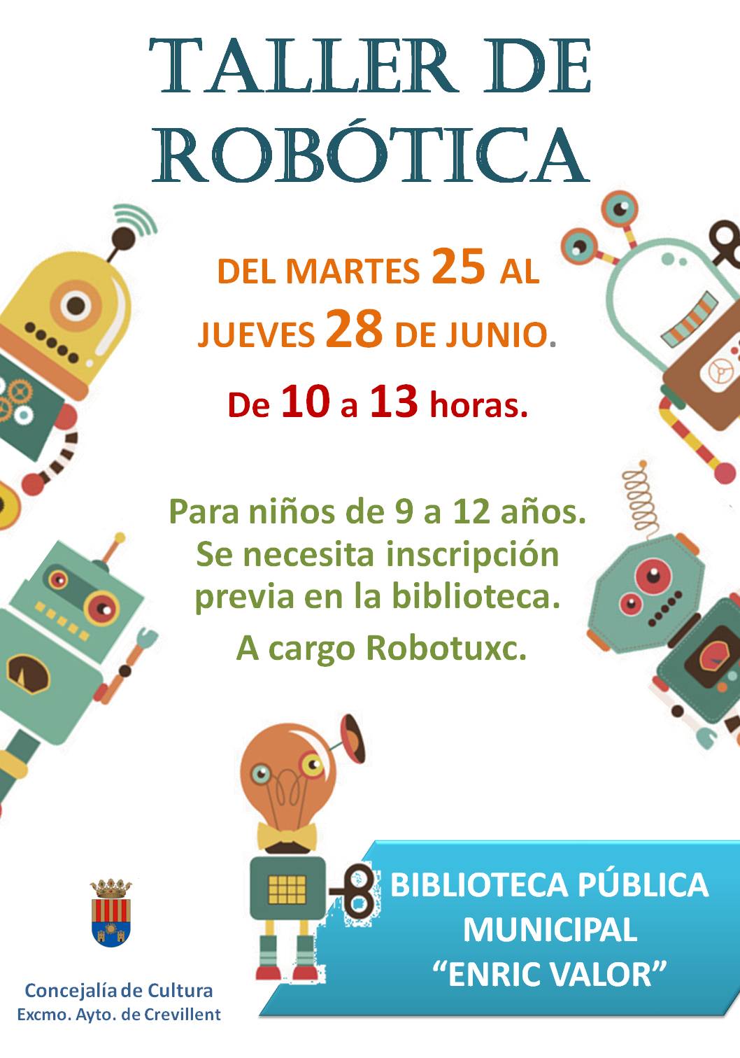 Crevillent (25/06/2019).- La Regidoria de Cultura ha organitzat un taller de robòtica que es durà a terme des de hui dimarts 25 de juny fins al divendres 28 juny a la Biblioteca Municipal “Enric *Valor”.