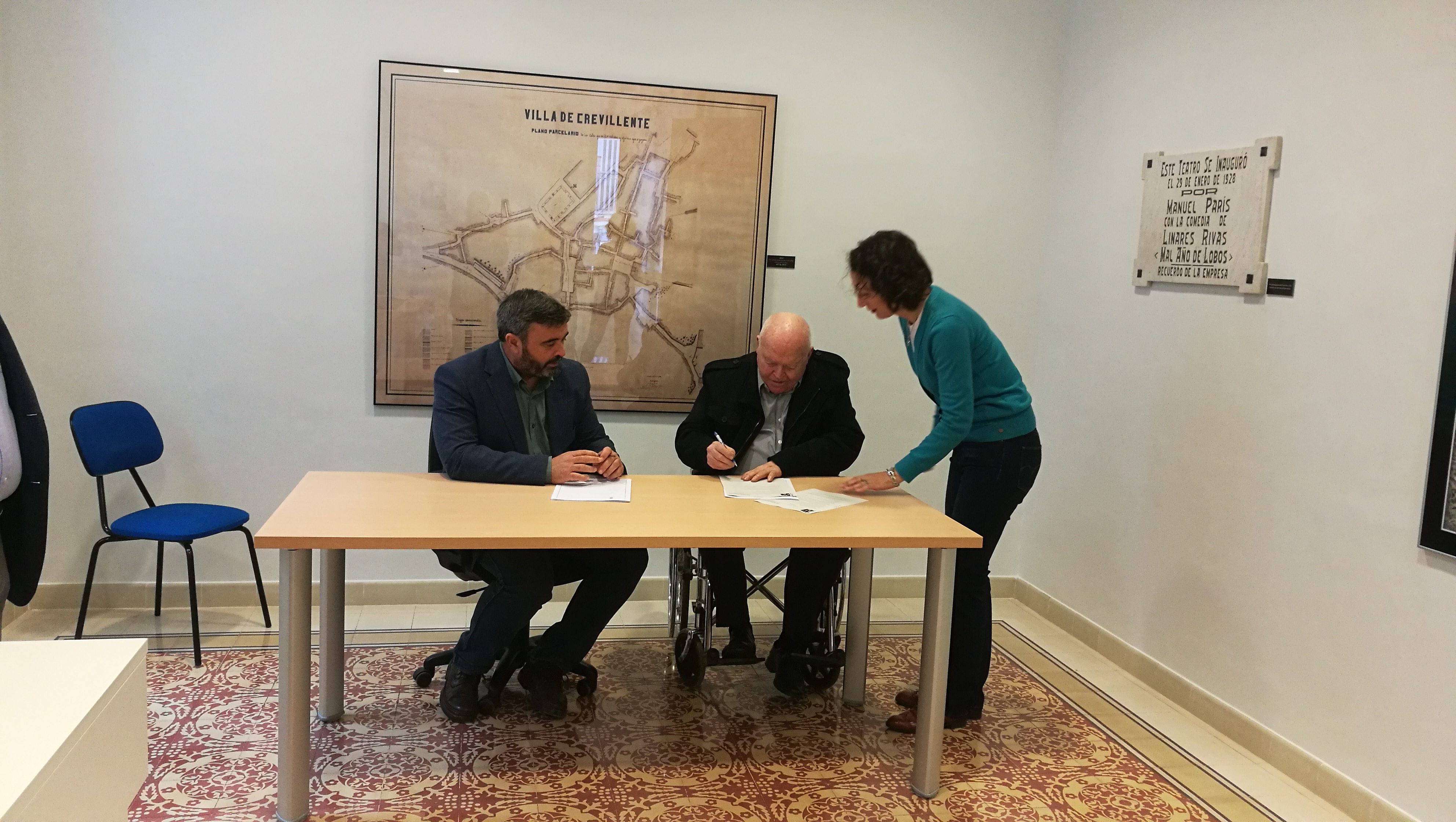 Crevillent (25/10/2019).- El pasado jueves, 24 de octubre, se firmó el convenio de donación de fotografías y recortes de prensa, entre Joaquín Pérez Galipienso y el Ayuntamiento de Crevillent para su conservación en el Archivo Municipal “Clara Campoamor”. Se trata de un centenar de fotografías realizadas entre 1960 y 1973, correspondientes a distintos aspectos de la vida crevillentina, tales como las fiestas de Moros y Cristianos en sus inicios o el primer encuentro entre Crevillent y Fontenay Le-Comte en 1968, con motivo de la firma del hermanamiento entre ambas localidades.