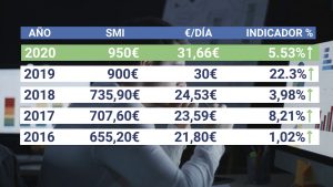 Además, también se ha anunciado que se tiene preparado un decreto-ley para derogar el despido por bajas médicas, y un acuerdo entre el Gobierno, los sindicatos y la patronal para aumentar el salario mínimo que pasará a 950 euros mensuales. El SMI se sitúa así en los 950 euros mensuales en 14 pagas, 13.300 € euros al año, lo que supone un incremento del 5,5% respecto a los 12.600 euros anuales de 2019, beneficiando con ello a más tres millones de trabajadores y trabajadoras a tiempo completo de carácter inmediato.