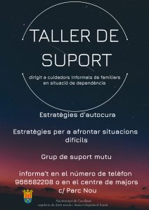 “A causa d’un augment en la població major dependent i de la sobrecàrrega que això suposa també per als cuidadors i cuidadores, creiem convenient realitzar aquest tipus de tallers de suport, que esperem que tinguen una gran acceptació perquè puga millorar la qualitat de vida de tots els afectats i afectades” comenta Montserrat Pineda, edil de Drets Socials i Majors.