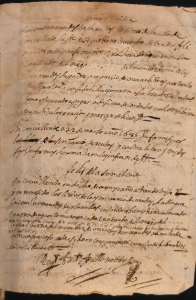 Crevillent (05/03/2020).- El Documento del mes de marzo corresponde con el más antiguo conservado en el Archivo Municipal “Clara Campoamor”, el cual está incluido en un protocolo notarial de D. Bautista Mas de Candela y Sax, fechado en 1686 y se trata de una denuncia presentada por Antonia Planelles, viuda de Jaume Hernández, contra Alexandre Galipienso por la venta de una hora de agua de riego, cuyo contrato está incluido en este protocolo, firmado el 22 de marzo de 1686, ante el notario Antonio Agulló Botella.