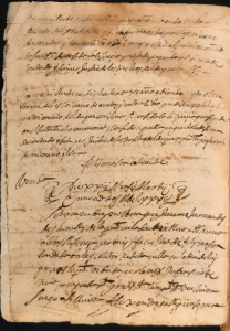 El document triat per a aquest mes de març té la peculiaritat afegida que no només està escrit en castellà, sinó també en valencià, i és un dels pocs documents en la nostra llengua. Aquest plet va ser presentat davant el ball de la vila de Crevillent -funcionari encarregat de l’administració de patrimoni del senyor territorial, el duc de Cárdenas- i s’inclouen les declaracions del demandant i demandat, juntament amb el contracte de compravenda d’una hora d’aigua de reg.