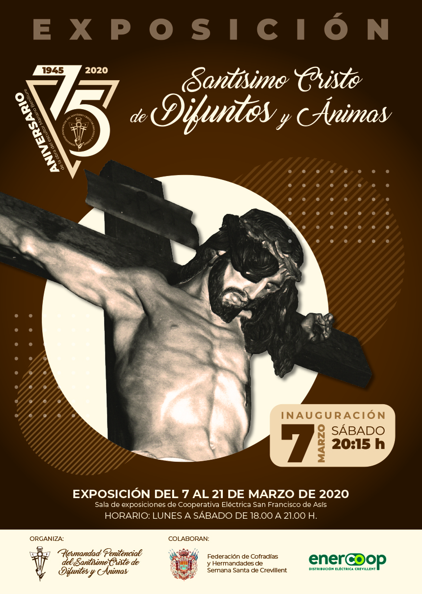 La hermandad del Stmo. Cristo de Difuntos Ánimas celebra este año el 75 aniversario de la llegada de su imagen, esculpida por el escultor valenciano Mariano Benlliure en 1945 y que en la Semana Santa de Crevillent protagoniza la procesión más fotogénica y singular que se realiza cada Martes Santo y que el conocida popularmente como “Processó de Els Sacs”.
