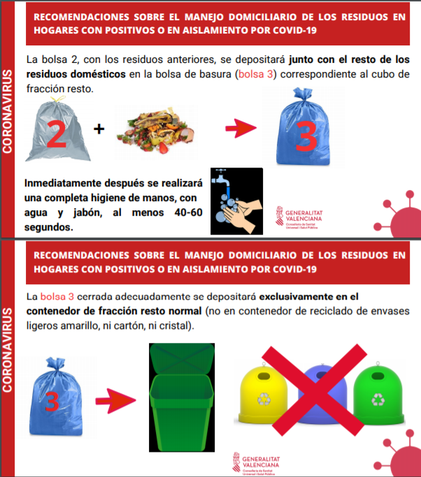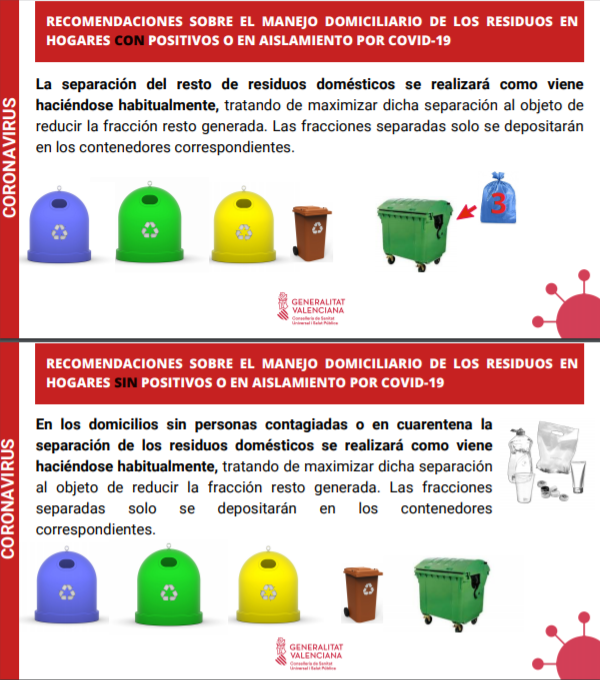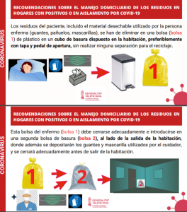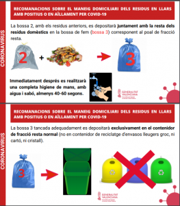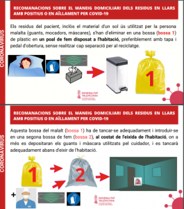 - La Concejalía de Servicios Públicos difunde entre la población de Crevillent las recomendaciones de la Generalitat sobre la gestión de residuos domésticos para los casos de COVID-19 en aislamiento domiciliario