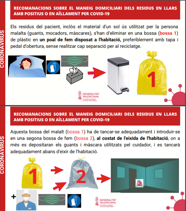 Les recomanacions de la Generalitat, basades en les instruccions del Ministeri de Sanitat, a l’hora de tirar el fem de les llars on hi haja casos positius de