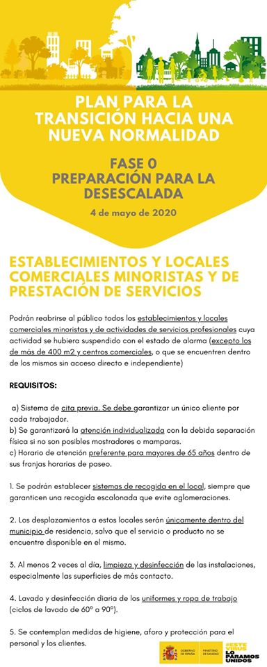 • La Concejalía de Sanidad informa sobre las condiciones y medidas sanitarias a adoptar ante la reapertura al público de los establecimientos y locales comerciales minoristas, así como de las actividades de servicios profesionales