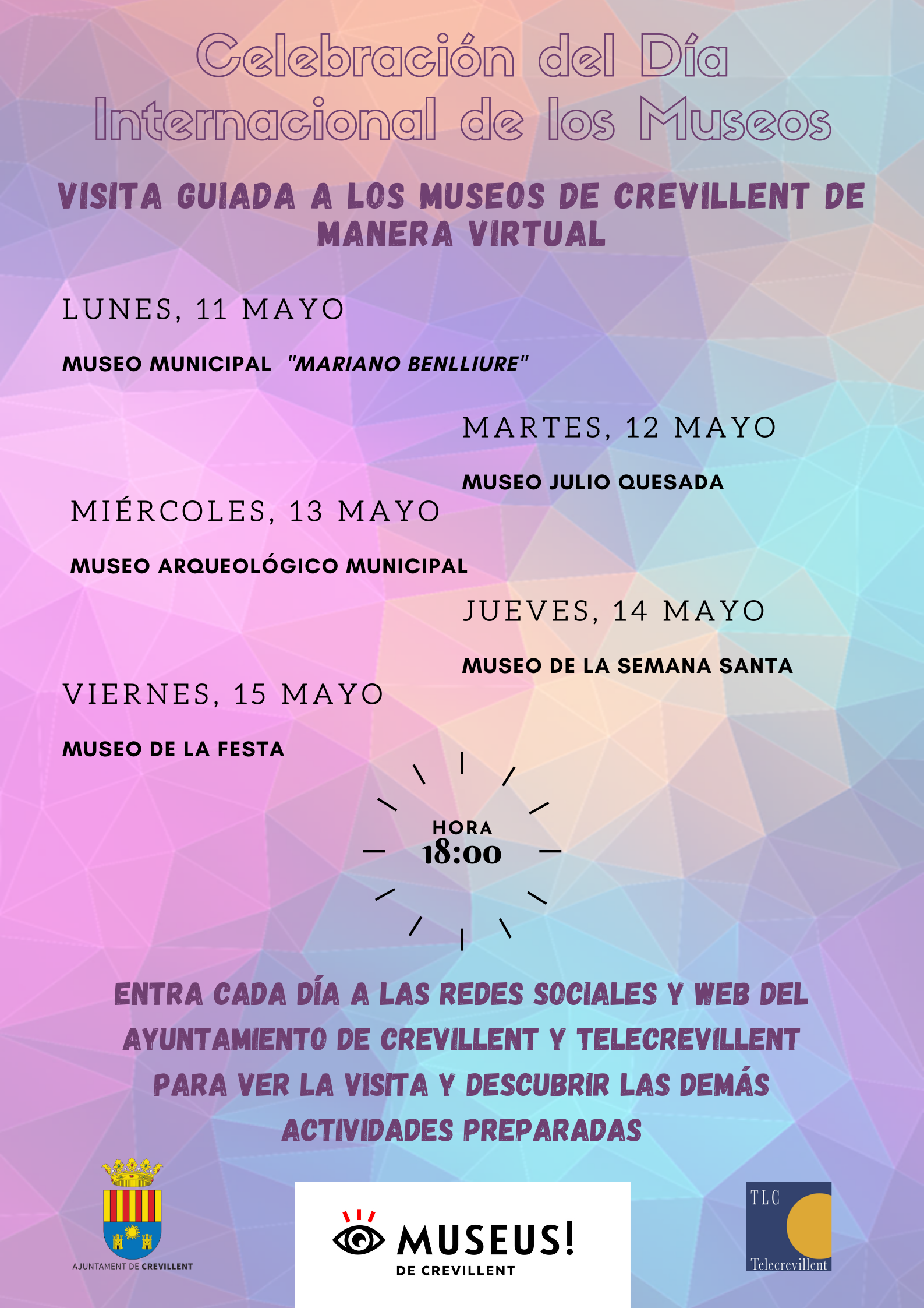 - El Ayuntamiento de Crevillent celebrará el Día Internacional de los Museos con la grabación de visitas guiadas a los cinco museos de la localidad y proporcionará juegos y actividades descargables e imprimibles dirigidas a toda la familia