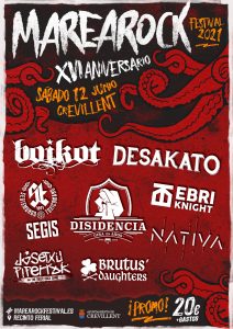 En relació al cartell, es mantindrà la participació dels artistes ja anunciats: Boikot, Desakato, Segismundo Toxicómano, Disidencia Oficial, Josetxu Piperrak & The Riber Rock Band, Ebri Knight, Nativa y Brutus’ Daughters. Les entrades per a aquest esdeveniment ja estan a la venda a través de la web www.marearockfestival.es a un preu de 20€ (+ despeses de gestió) i en els punts de venda habituals.