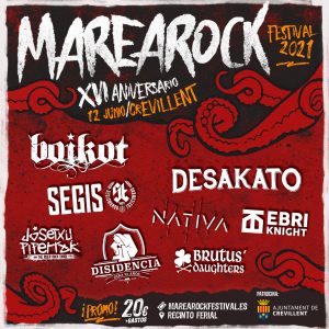 En relació al cartell, es mantindrà la participació dels artistes ja anunciats: Boikot, Desakato, Segismundo Toxicómano, Disidencia Oficial, Josetxu Piperrak & The Riber Rock Band, Ebri Knight, Nativa y Brutus’ Daughters. Les entrades per a aquest esdeveniment ja estan a la venda a través de la web www.marearockfestival.es a un preu de 20€ (+ despeses de gestió) i en els punts de venda habituals.