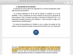 - El martes 5 de mayo informaron a los concejales que la prueba de los test era de carácter OBLIGATORIO para todo el personal del Ayuntamiento, incluido los concejales. Esta prueba también se realizaría a los funcionarios y políticos que han trabajado desde casa siguiendo las recomendaciones de las autoridades sanitarias.