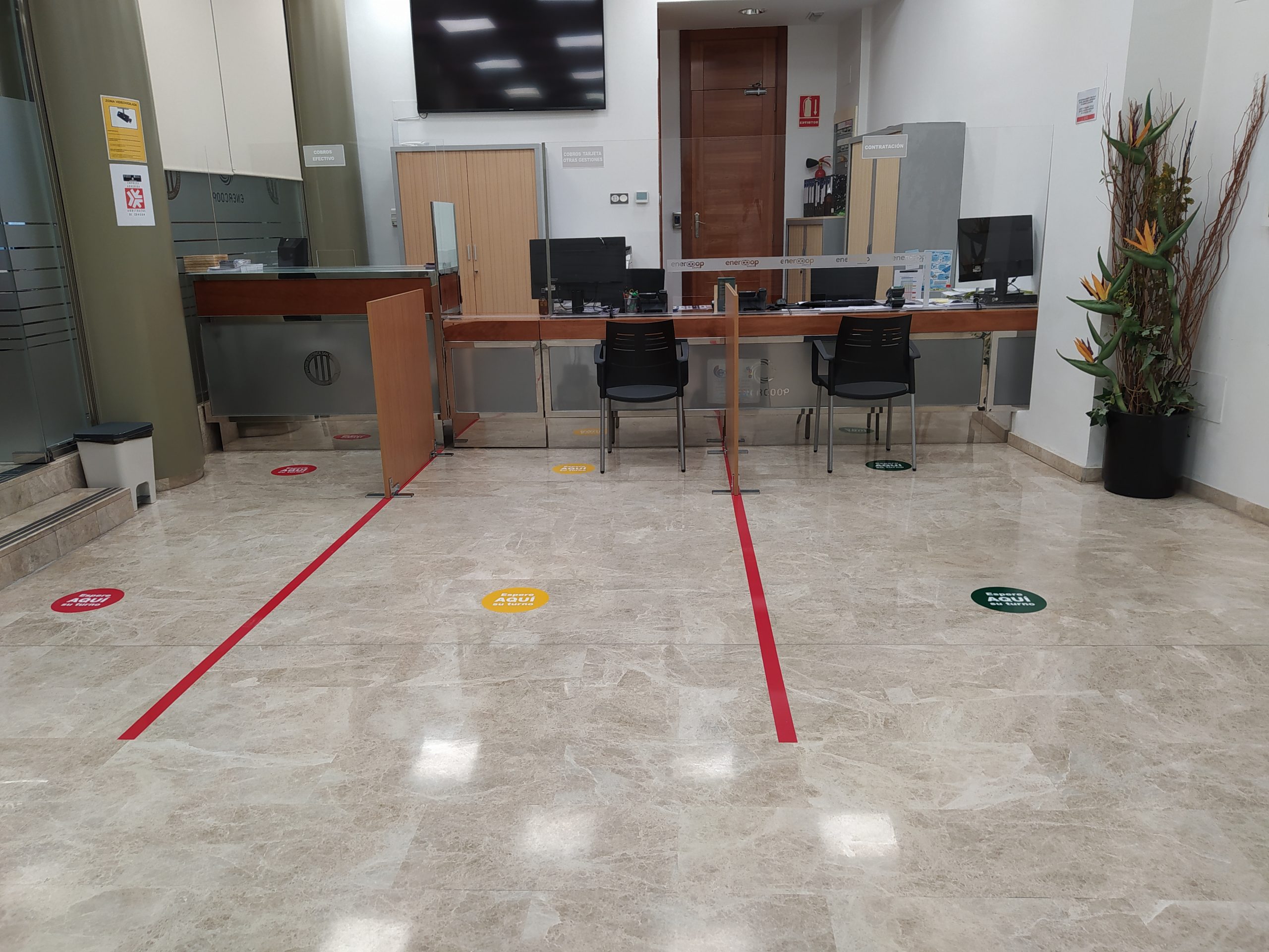 Igualmente, se han reconfigurado los espacios para garantizar distancias de 2 metros tanto en las zonas de espera como en los puestos de atención, primando siempre la seguridad, se han delimitado zonas mediante nueva señalética instalada en suelos y acera exterior y se ha llevado a cabo la instalación de mamparas protectoras. Dado que se trata de espacios cerrados, se recomienda el uso de mascarillas por parte de los clientes, si bien se estará en cada momento a lo que establezcan las autoridades sanitarias.