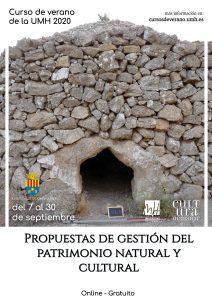 L’altre curs subvencionat és “Propostes de gestió del patrimoni natural i cultural” que comptarà amb docents de reconegut prestigi en aquest camp, tècnics de l’administració que treballen al camp de la gestió del patrimoni, no sols cultural sinó també natural. La metodologia serà similar a l’anterior, havent de fer una proposta final de posada en valor d’algun espai amb rellevància cultural o natural. Aquest curs començarà el 7 de setembre i estarà disponible online fins al dia 30.