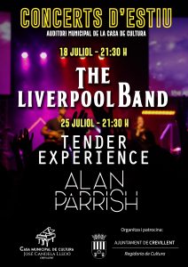 Concert a càrrec de Liverpool Band, banda crevillentina que va nàixer en 1997 i que al llarg de tots aquests anys ha participat en grans esdeveniments internacionals com el prestigiós “Beatles day” de Mons, a Bèlgica o el francés “Beatles night” celebrat a Lille. Els seus membres són: Jose Manuel Lledó Adsuar (guitarra rítmica i veu), Juan Antonio Juárez (guitarra solista i veu), Jorge Aniorte (Baix i veu) i Iván Martínez Ferrández (bateria i percussió).