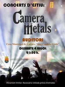 Concert a càrrec de Camera Metals, un grup de músics amb instruments de vent-metall (dues trompetes, trompa, dos trombons i una tuba) que interpretaran bandes sonores, sarsueles, pasdobles i peces clàssiques. Un repertori variat per a donar cabuda a tots els gustos.