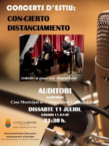 “Con-cierto distanciamento”, a càrrec d’Unbeldí amb Pepa García, María Maciá i Gemma García Maciá, acompanyades al piano per José Alberto Aznar Asencio. Un concert pensat per a tornar a l’escenari després del confinament i oferir al públic la màgia de la música en directe. S’ha seleccionat algunes de les cançons preferides per tots els públics: Broadway, musicals, cançó espanyola, boleros, etc.