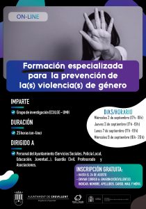 Crevillent (23/07/2020).- Detectar, prevenir y erradicar la violencia de género es el objetivo de la formación online que ofrecerá la Concejalía de Igualdad de Crevillent durante el mes de septiembre, concretamente los días 2, 3, 7 y 9 septiembre.
