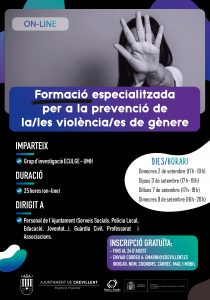 Crevillent (23/07/2020).- Detectar, previndre i erradicar la violència de gènere és l’objectiu de la formació online que oferirà la Regidoria d’Igualtat de Crevillent durant el mes de setembre, concretament els dies 2,3,7 i 9 setembre.
