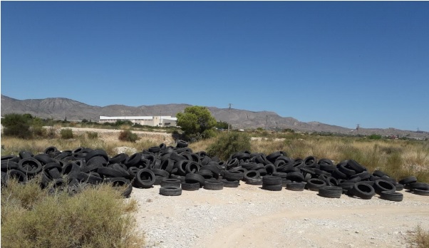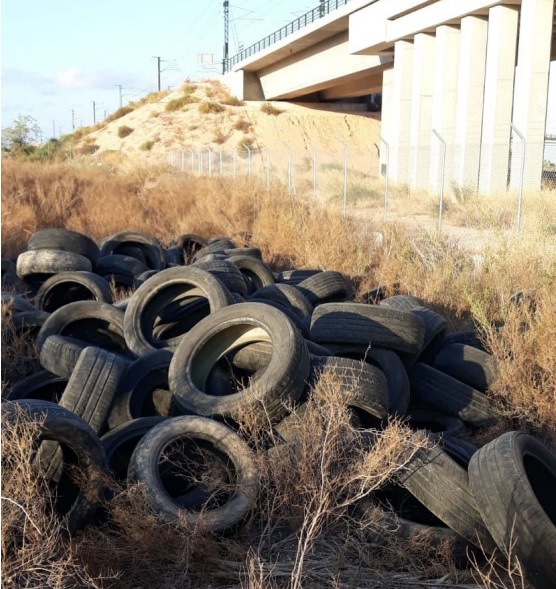 Crevillent (28/08/2020).- Ayer jueves, se iniciaron los trabajos de recogida de limpieza y retirada de todas las ruedas que se han venido vertiendo durante estos días en todo el término municipal de Crevillent.