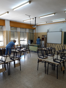 Durant els mesos d’estiu l’empresa de neteja d’edificis públics ha realitzat una neteja a fons de totes les aules, a més de la desinfecció de tot el material i joguets que es troben en els col·legis, per a garantir així la seguretat dels escolars.
