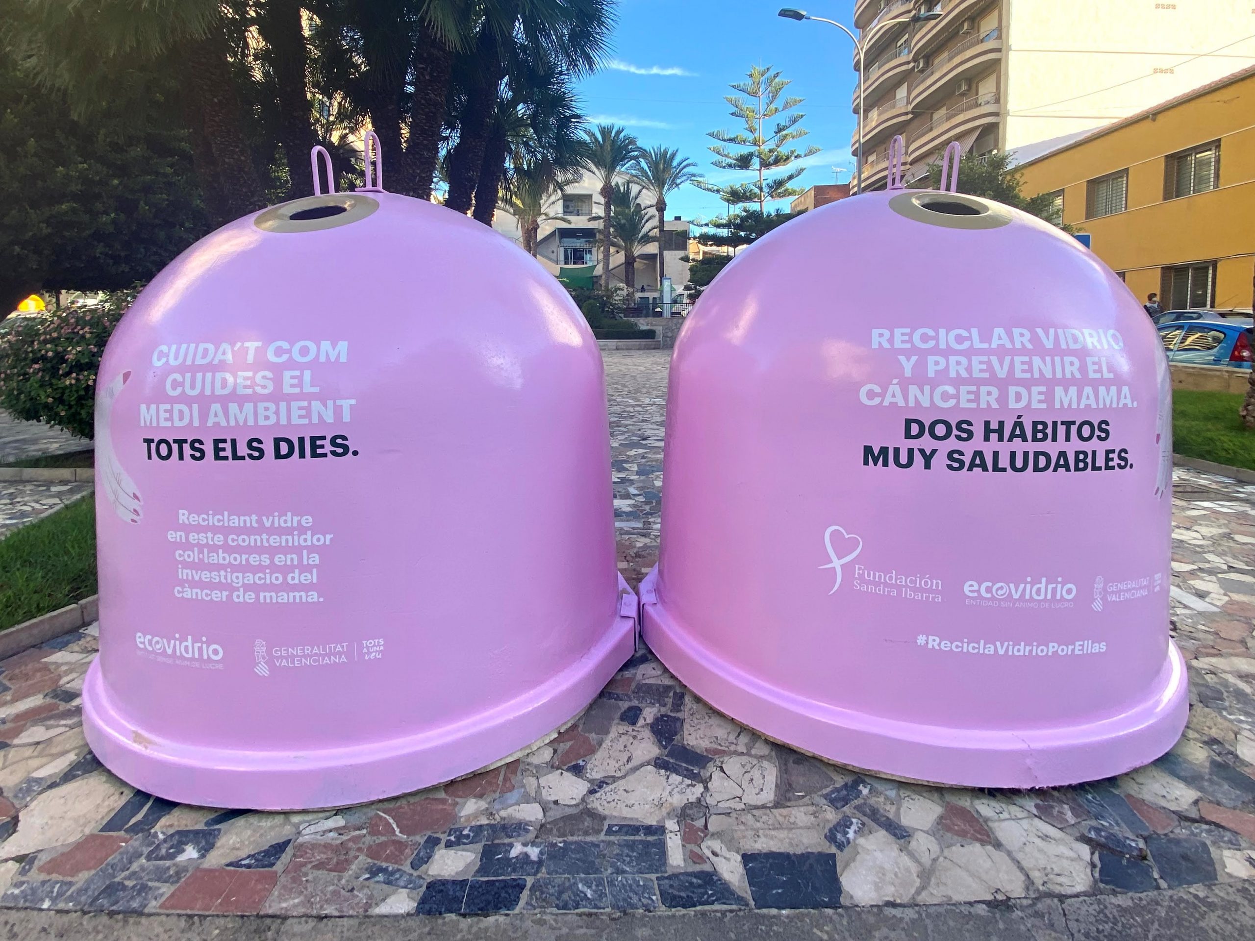 L’Ajuntament de Crevillent i Ecovidrio instal·len 2 contenidors roses per a recaptar fons, al mateix temps que es fomenta el reciclatge d’envasos, per a la “Fundación Sandra Ibarra” amb motiu del Dia Mundial del Càncer de Mama