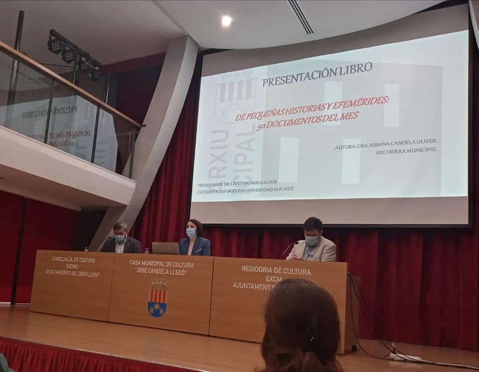 El divendres 23 d’octubre es va presentar a la Casa Municipal de Cultura el primer llibre editat per l’Arxiu Municipal “Clara Campoamor”, titulat De pequeñas historias y efemérides: 50 Documentos del Mes, l’autoria del qual correspon a l’Arxivera Municipal, la Doctora en Història Bibiana Candela Oliver, a càrrec de l’Arxiu des de 2002.