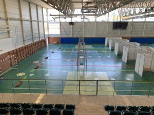En cadascuna de les cabines de vacunació hi haurà dos professionals sanitaris. Un s’encarregarà d’administrar la vacuna i l’altre de preparar les dosis entre pacients. S’han senyalitzat itineraris específics tant per a l’accés a cadascun dels boxs com per a l’entrada i eixida del recinte esportiu. Hi haurà un únic sentit de circulació.