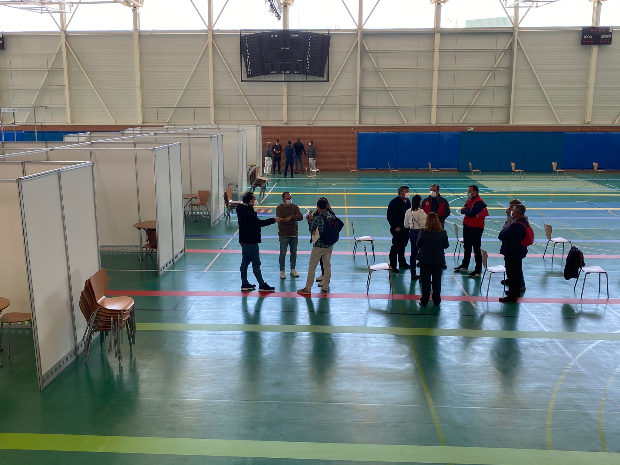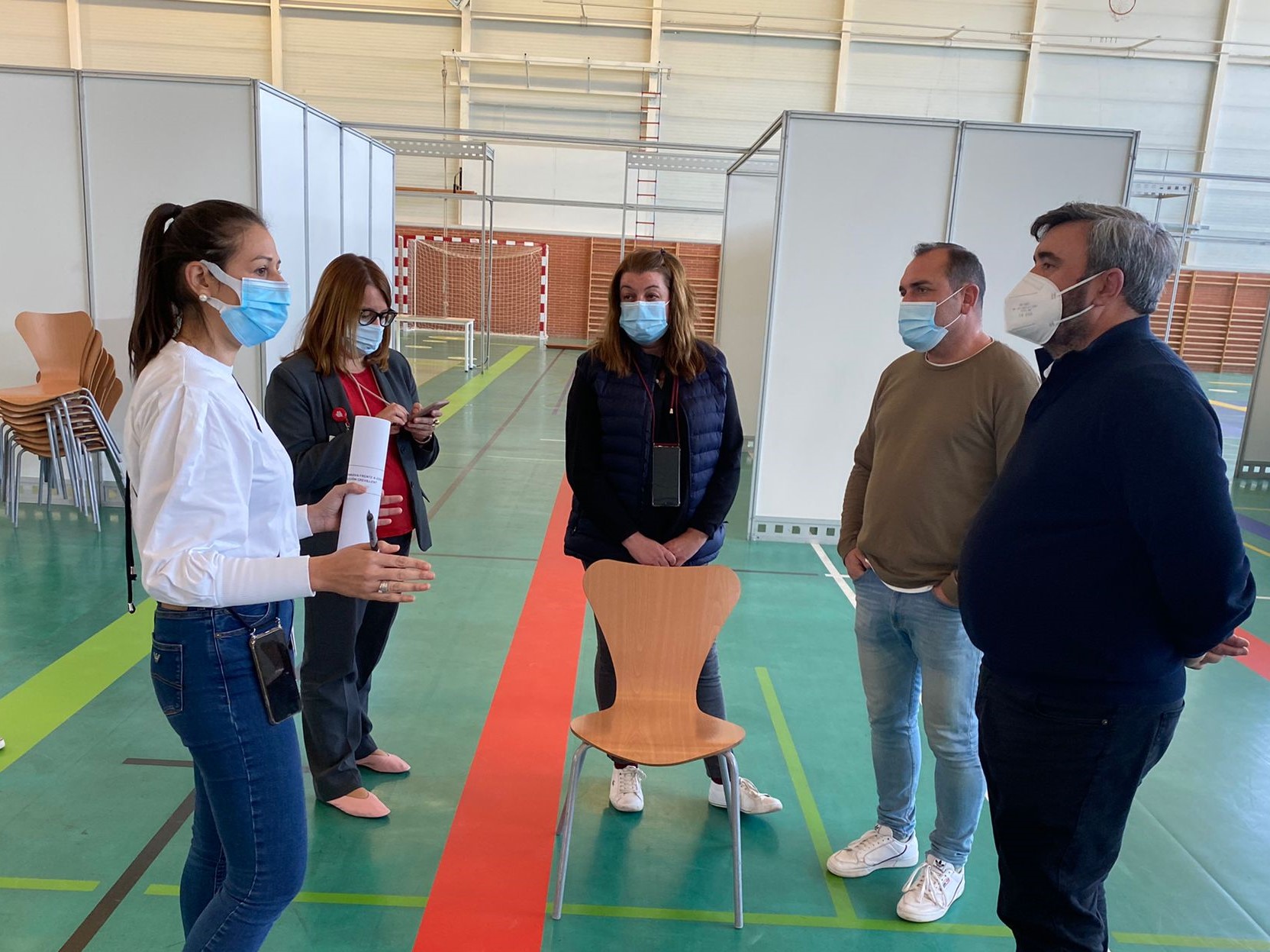 L’alcalde, la regidora de Sanitat i el regidor d’Espais Públics visiten el Pavelló Félix Candela al costat de les responsables del Centre de Salut per a comprovar que tot està a punt, de cara al començament de la campanya de vacunació massiva previst per a abril