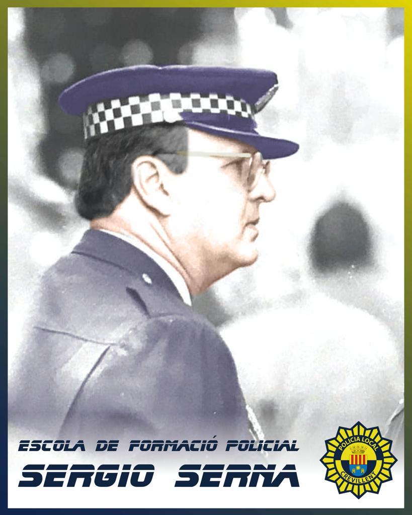 El hecho de institucionalizar los cursos programados como proyecto a consolidar ha llevado a valorar por el seno del Consell de Policia el dar un nombre a esta Escuela de Formación Policial y en ese sentido ha sido unánime el parecer de todos los componentes presentes de aprobar por unanimidad el darle el nombre del agente recientemente jubilado Sergio Serna.