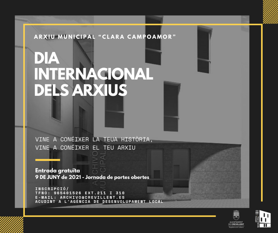 Amb motiu d’aquesta efemèride, l’Arxiu Municipal de Crevillent obri les seues portes als visitants que desitgen conéixer la història del municipi, visitar les ruïnes del castell de la nostra vila, d’origen medieval, i veure, de primera mà, els tresors que alberga aquest servei a través de diferents tipus de documents, com a fotografies, plans, manuscrits, segells, publicacions…, així com les exposicions temporals amb què compte, dedicades als Crevillentins Il·lustres i a la Fàbrica de Catifes “Hijos de Augusto Mas”, la Fàbrica Gran.