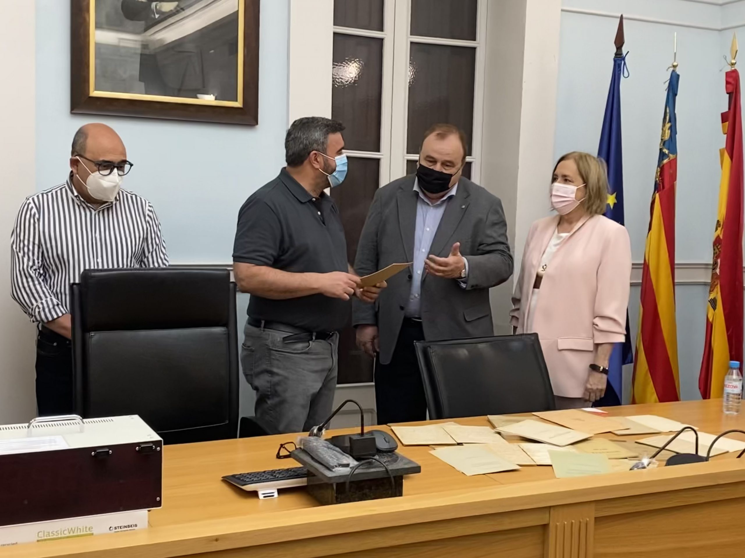L’alcalde, José Manuel Penalva, i el regidor de Cultura, Jesús Ruiz, han rebut en el Saló de Plens a Miguel Jiménez de Cisneros, net del geòleg i paleontòleg Daniel Jiménez Cisneros, qui ha realitzat una cessió temporal de documentació amb la qual es pretén continuar treballant des de l’àrea Cultura