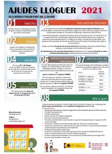 Segons expliquen des de la regidoria, s’han convocat dos ajudes: les ordinàries i les ajudes al lloguer per a menors de 35 anys. El procediment de l’ajuda és a través de concurrència competitiva i atorga fins al 50% del lloguer per a joves menors de 35 anys i majors de 65 anys, mentres que per a la resta l’ajuda aconsegueix el 40% del lloguer de tot l’any 2021.