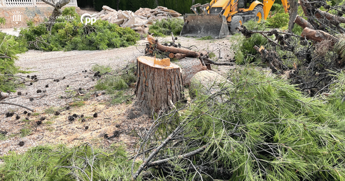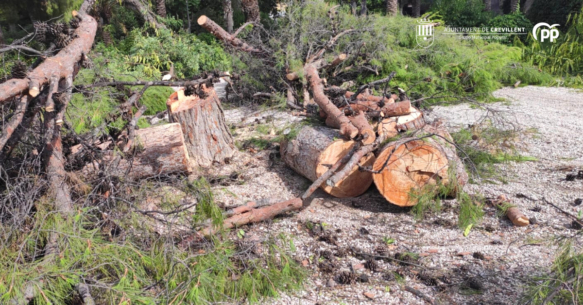 El alcalde que acusaba en el 2019 al PP de querer acabar con el “Pulmón verde de Crevillent” está consintiendo ahora que se talen más árboles de los previstos por el PP