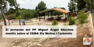 Crevillent (06/07/2021).- El portaveu del grup Popular Miguel Ángel Sánchez ha tornat a mentir, deixant veure públicament la seua doble moral i hipocresia. El mateix Partit Popular que va tancar i va permetre l’abandó de l’arboreto en el CEMA Els Molins de Crevillent, deixant-lo en un estat lamentable, és ara el que reivindica la necessitat de la seua recuperació.