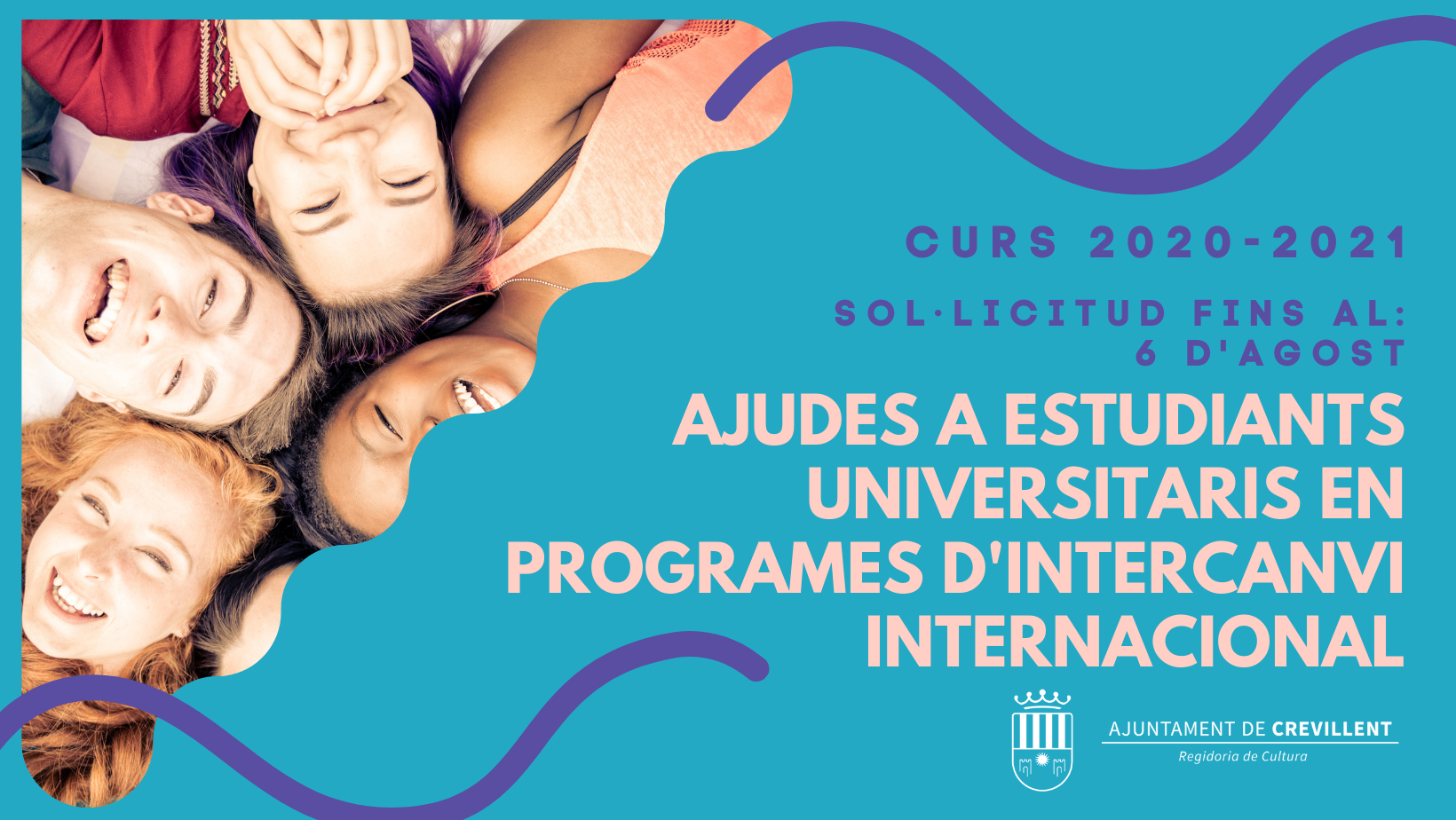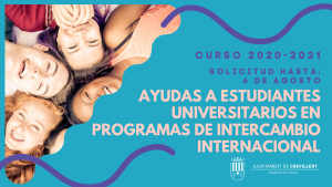 Crevillent (20/07/2021).- La Regidoria de Cultura informa que ja està oberta la convocatòria d’ajudes econòmiques a estudiants universitaris amb beca en programes d’intercanvi internacional per al curs 2020-2021.