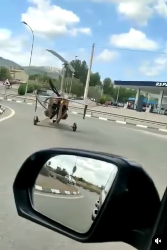 Alicante, 16/septiembre/2021.- La Guardia Civil de Alicante ha denunciado, por dos infracciones de tráfico y una infracción a la seguridad aérea, al piloto de un autogiro, un hombre español de 38 años, que circuló por una carretera comarcal para llenar el depósito de combustible.