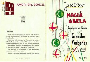 El Archivo Municipal se suma a la celebración de las fiestas patronales con el programa de Grandes Verbenas de 1970, en el que se anuncian las actuaciones musicales organizadas por el Ayuntamiento, que tenían lugar en los jardines del instituto Maciá Abela, por entonces situado en el actual colegio Escoles Noves.