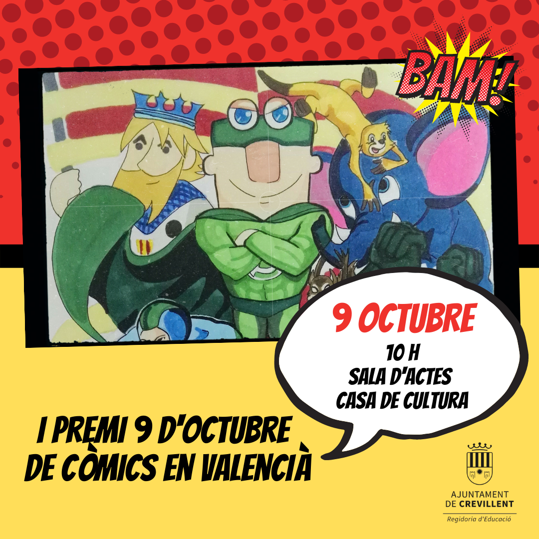 - La Regidoria d’Educació entregarà els “I Premis 9 d’Octubre de Còmics en Valencià” aquest dissabte a les 10 h en la Sala d’Actes de la Casa de Cultura