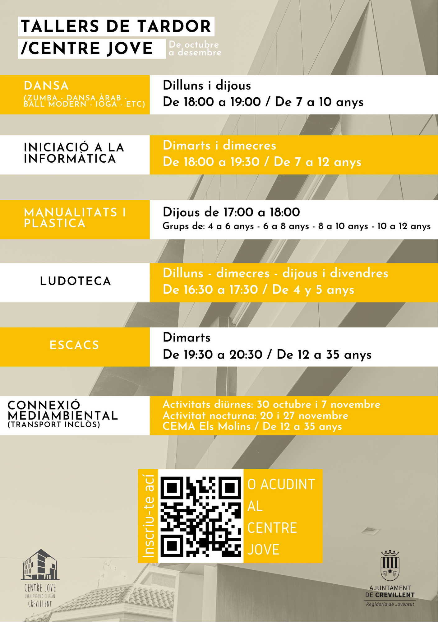 Las actividades que se impartirán en el Centre Jove son: