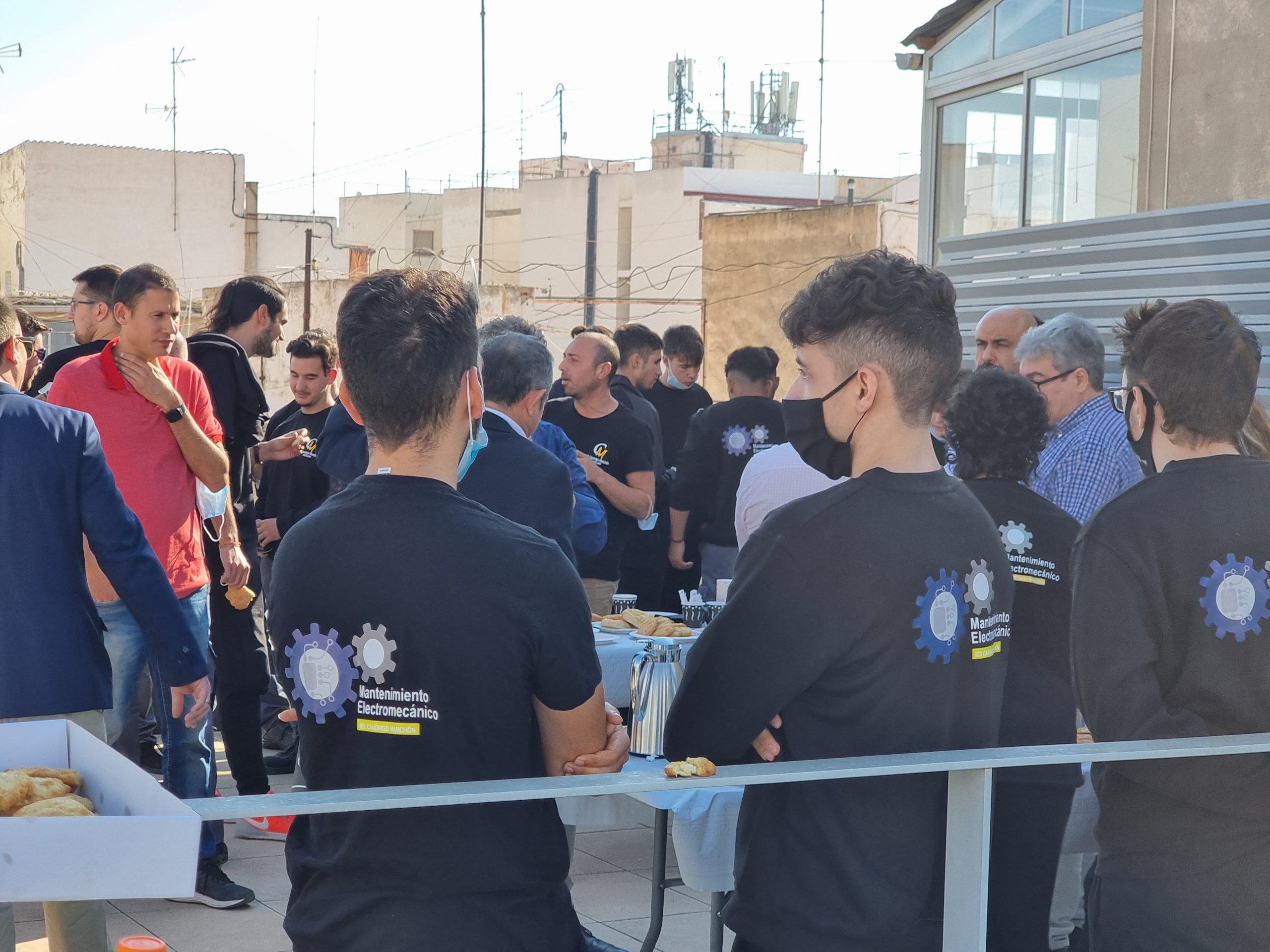 El acto también ha contado con la participación de profesionales de otras empresas como José Vicente Santacreu, de Schneider Eléctrica, quien ha abordado para los alumnos la importancia de la digitalización en términos de eficiencia y sostenibilidad y presentado diversas soluciones tecnológicas. También con antiguos alumnos del IES Canónigo Manchón, en activo como electromecánicos o profesionales en mecatrónica industrial, quienes a través de la mesa redonda “Realidad laboral en la Electromecánica Industrial” han compartido con los futuros profesionales su experiencia personal dentro del mercado laboral.