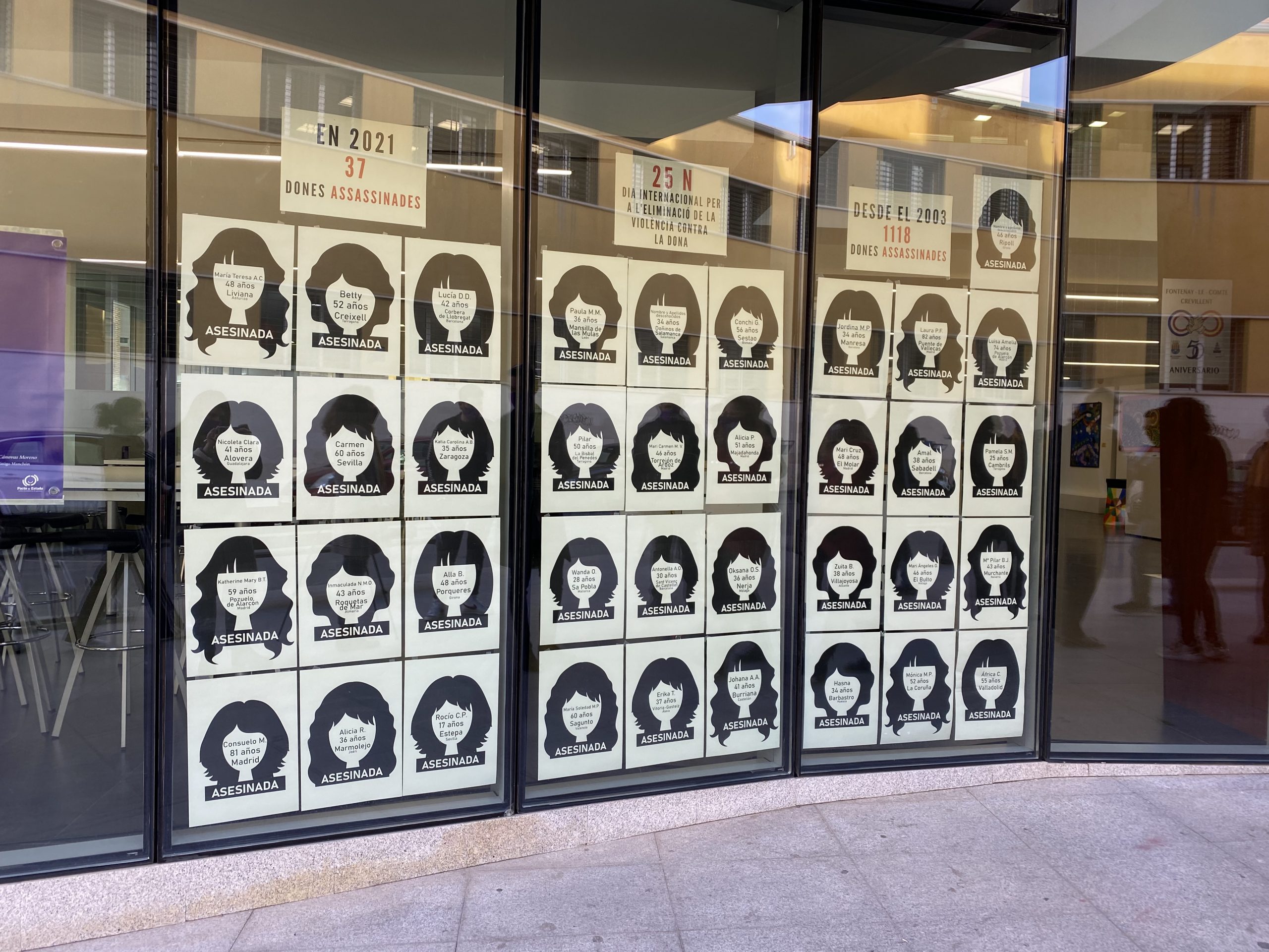A las 11:00 h de la mañana tenía lugar el primer acto del día, con la inauguración en el Centre Jove de una exposición de siluetas en homenaje a las mujeres que han sido asesinadas donde aparecen reflejados datos como que en lo que llevamos de año han sido 37 las mujeres asesinadas a manos de sus parejas o exparejas, o que desde 2003 se han contabilizado 1.118 asesinatos de mujeres solo en España.