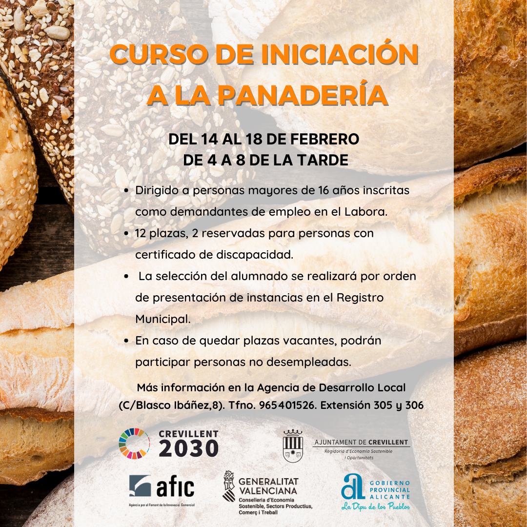 - La Concejalía de Economía Sostenible de Crevillent ha organizado desde la ADL un curso de panadería y un curso básico de cocina, dirigidos ambos a personas desempleadas mayores de 16 años