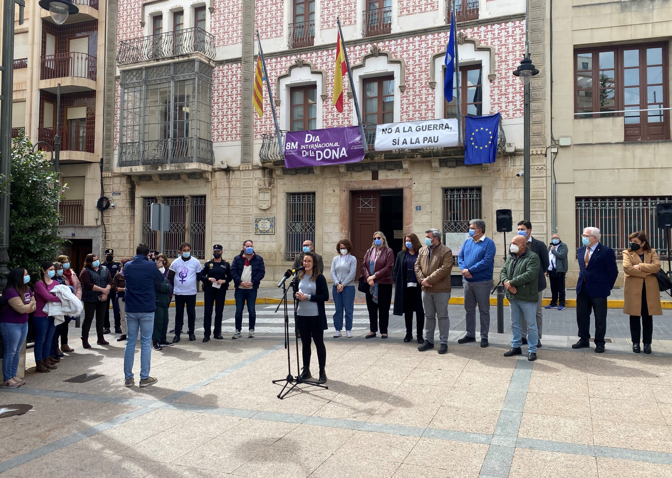 Crevillent (08/03/2022).- L’Ajuntament de Crevillent s’ha sumat a la celebració del 8 de març, Dia Internacional de la Dona, amb diferents actes i activitats per a reivindicar la igualtat de gènere i confirmar el compromís del municipi amb els drets de les dones. A les 12.00 h ha tingut lloc una concentració a les portes del consistori i a les 19:30 h es durà a terme una manifestació convocada per l’Associació Feminista “Isabel Alfonso Candela”, que recorrerà els carrers del poble per a defensar la igualtat i denunciar el masclisme.