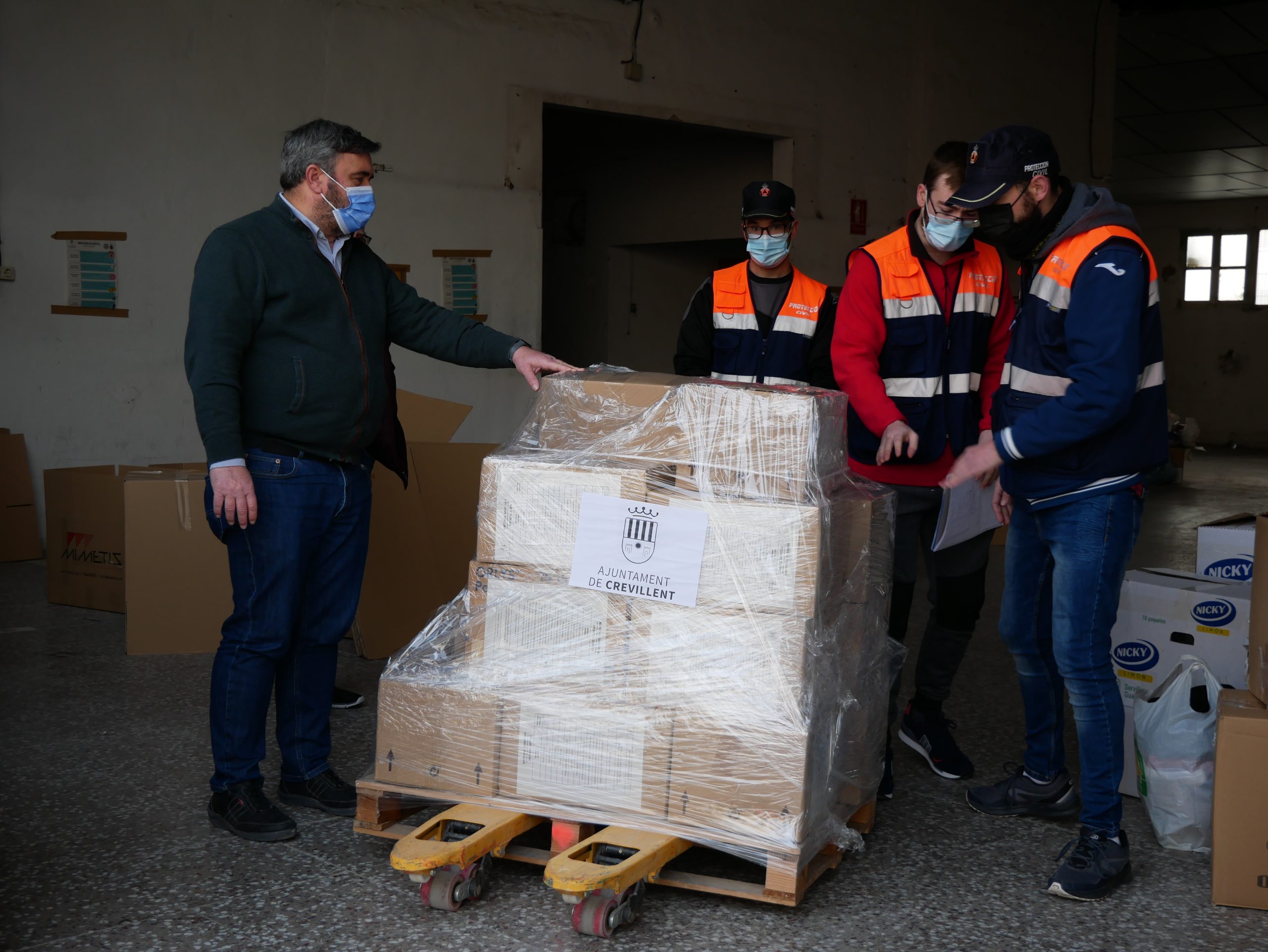 L’alcalde, José Manuel Penalva, agraeix l’“enorme solidaritat del poble crevillentí” i informa que s’han enviat ja huit palets replets de material a la Ciutat de la Llum, per al seu trasllat a Ucraïna per part de la Generalitat Valenciana, i està previst aquests dies transportar-ne un mínim de nou més