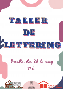 Per a aquest mes de maig s’han programat tres activitats, dues sessions de contacontes i un taller de lettering (l’art de dibuixar lletres a mà de manera creativa), per al qual serà necessària inscripció prèvia, que es pot formalitzar ja a la Biblioteca Municipal. El taller està previst per al dissabte, dia 28, a les 11 h, serà impartit per l’artista José Cuerda i està dirigit a públic adult i juvenil a partir de 14 anys.