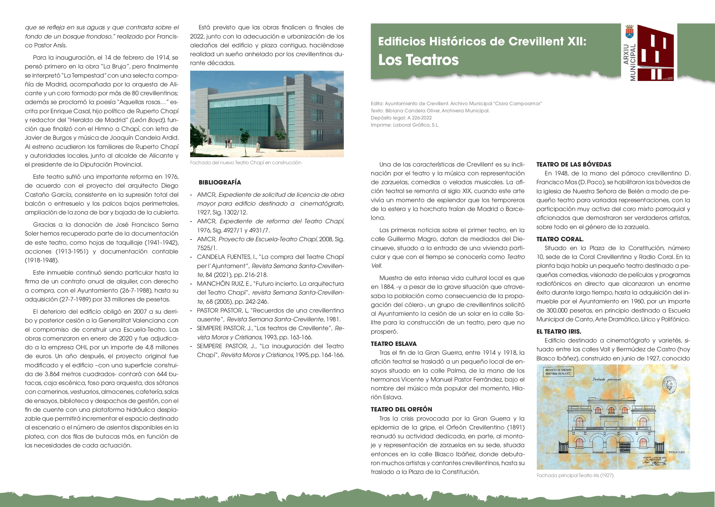 Crevillent (27/05/2022).- El Archivo Municipal “Clara Campoamor” edita el número doce de la serie Edificios Históricos de Crevillent, dedicado en esta ocasión a los teatros de la localidad.