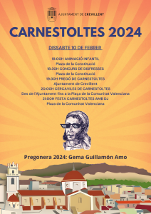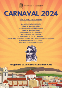 Las Concejalías de Fiestas y Juventud han presentado  la programación organizada para este Carnaval que se celebrará durante los días viernes 9 y sábado 10 de febrero. Entre las actividades figuran talleres, concursos de disfraces, pasacalles y disco móvil. Además, la crevillentina Gema Guillamón Amo ejercerá de pregonera desde el balcón del Ayuntamiento en el marco de esta celebración.