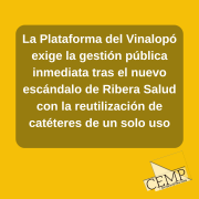 La Plataforma del Vinalopó exige la gestión pública inmediata tras el nuevo escándalo de Ribera Salud con la reutilización de catéteres de un solo uso